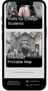 After creating an app for the NMMA, I needed to create a responsive website that would be able to adjust and account for varying screen sizes. The ultimate goal for each user is to click on the ticket tab, but every user has different needs to confirm their visit or relinquish any hesitancy. Over the course of 3 weeks, I conducted research, sketched responsive website ideas, and created a final prototype. Explore below: